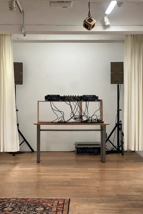 今回の利用目的は「フリーマーケット」と「パーティー」でのご利用。音楽を流し、パーティーをしながらフリマを楽しみたいとのことで、DJセットやミラーボールも設置。