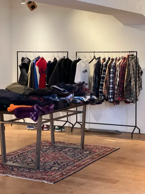 KICHIに常設されている「Taguchi」のスピーカーがお客様からも評判と、LUCKYANDDREAMのスタッフからの一言。ちなみにKICHIにはラックが多数用意されているので、商品の陳列にも大活躍で大変助かりましたとさらに一言。ちなみに床に敷いてあるラグは、KICHIからお借りしたプロップだそうです。