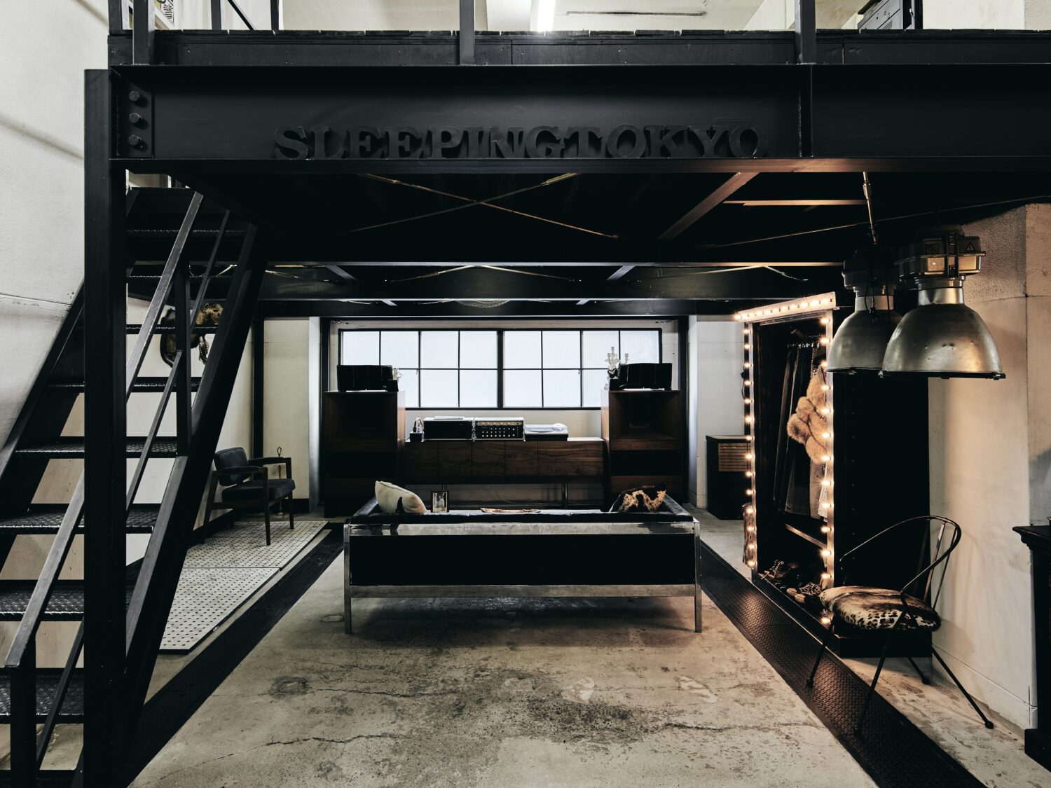 天井高4.8m。都心のガレージスタジオ