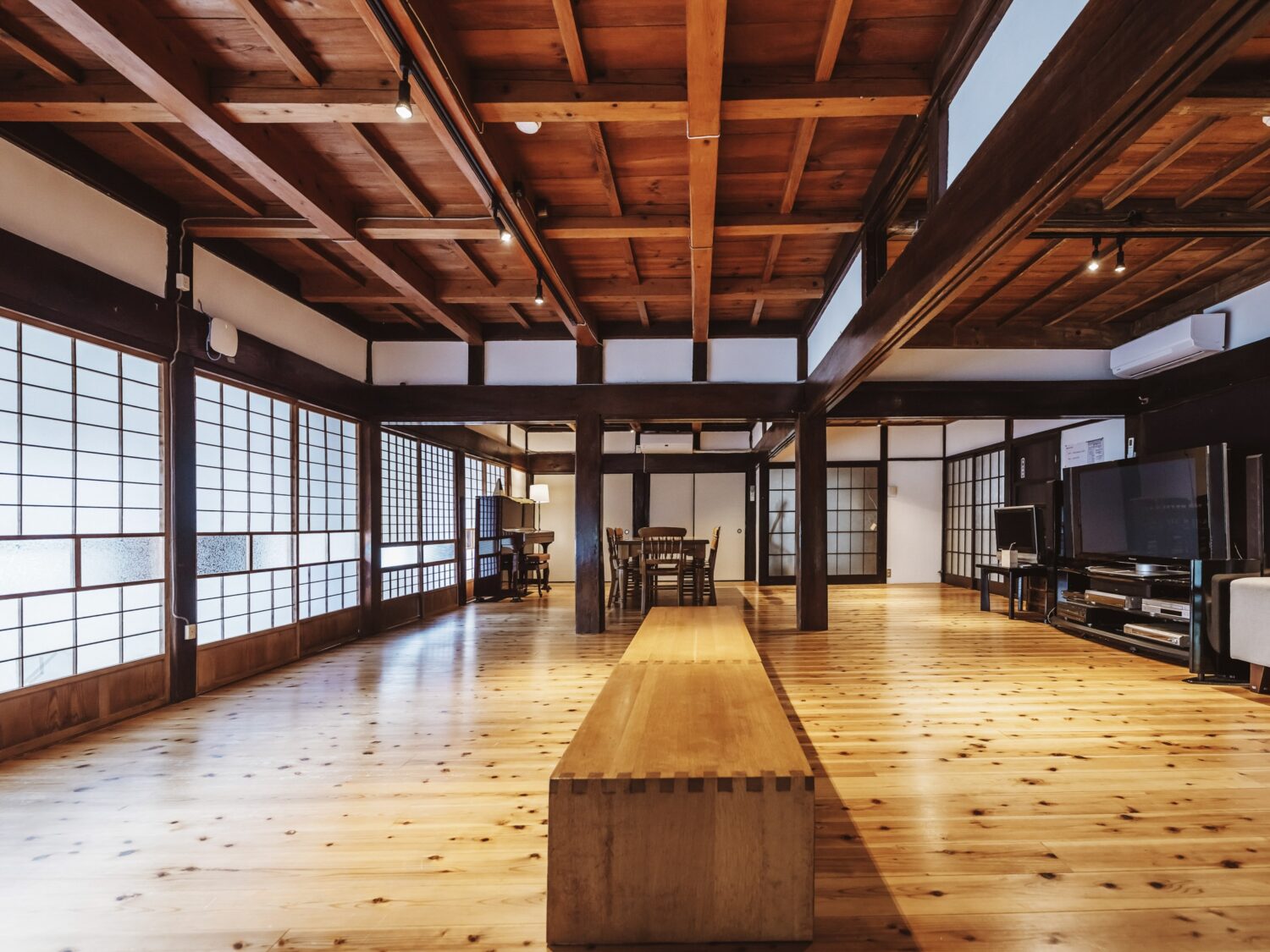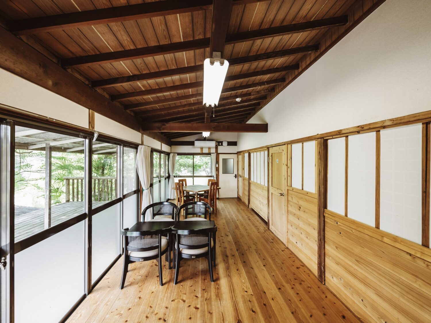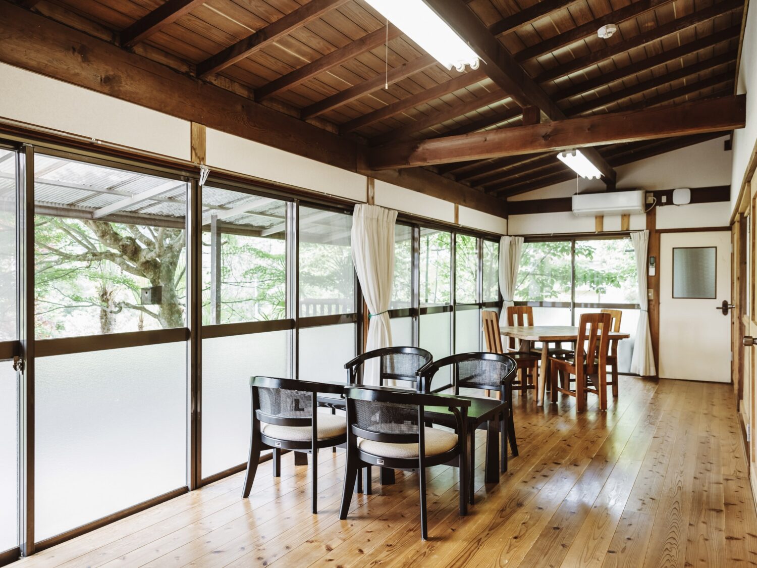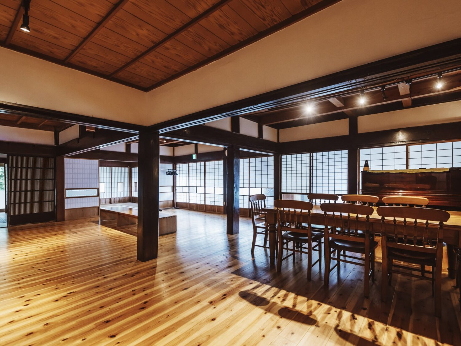 相模湖にほど近い、静かな森に囲まれた築120余年の古民家です。本館(約250平米)の館内には、力強い木梁が走る大広間や趣の異なる和室、奥行きのある廊下が連なり、どこを切り取っても空気がいい。特筆すべきは、本館だけにとどまらず、別館(約78平米)やBBQスペースまで一体で使える点です。撮影から滞在までを同じ場所で完結できるため、移動や手配の手間を大きく削減でき、現場の負担をグッと軽くしてくれます。つまり、コストパフォーマンスにもタイムパフォーマンスにも優れている。結果として無理なく撮影を回せる、全体的にバランスのいい一軒となっています。
