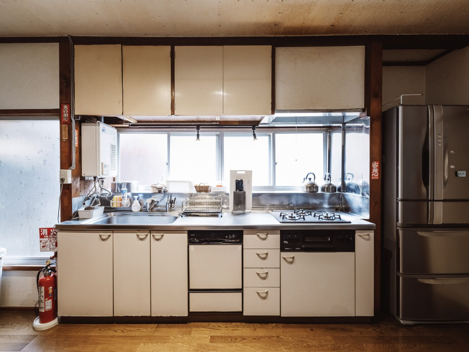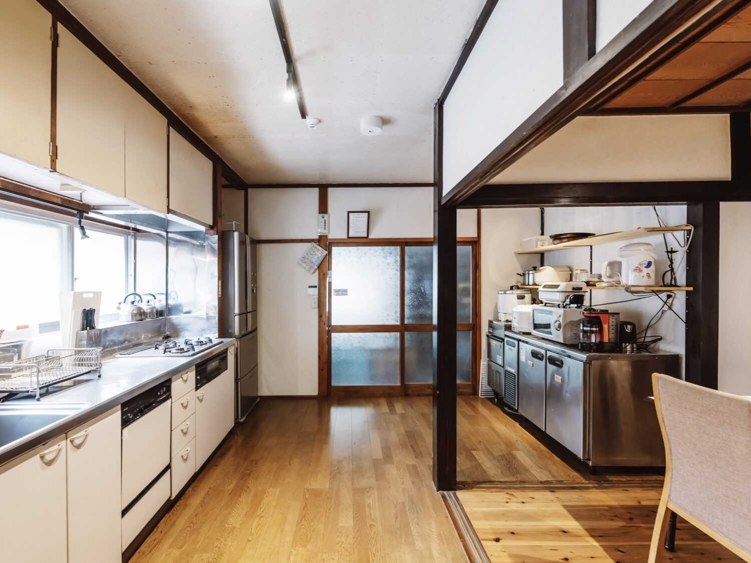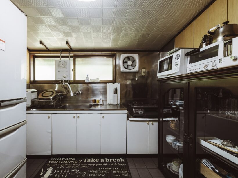 設備:流し、三口コンロ、冷蔵庫、炊飯器、コーヒーメーカー