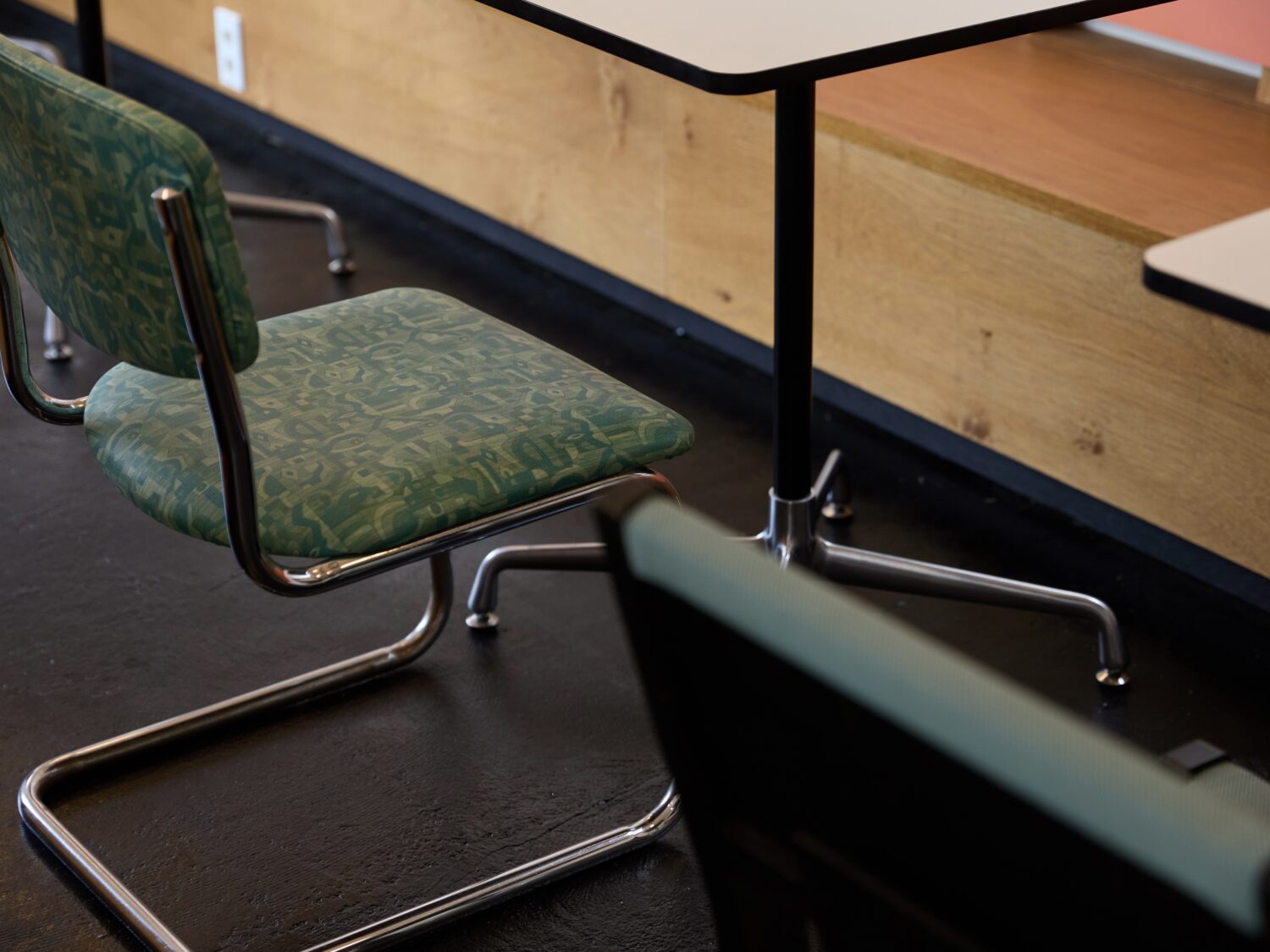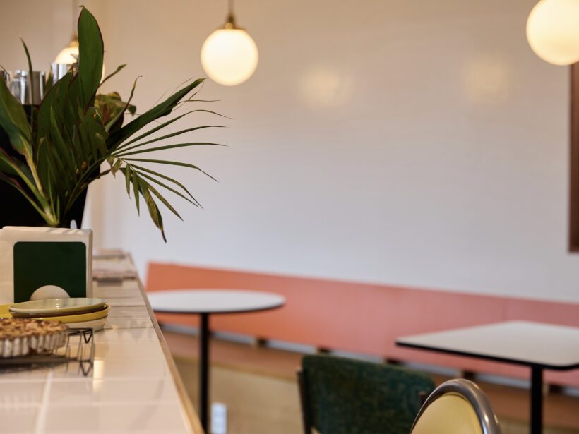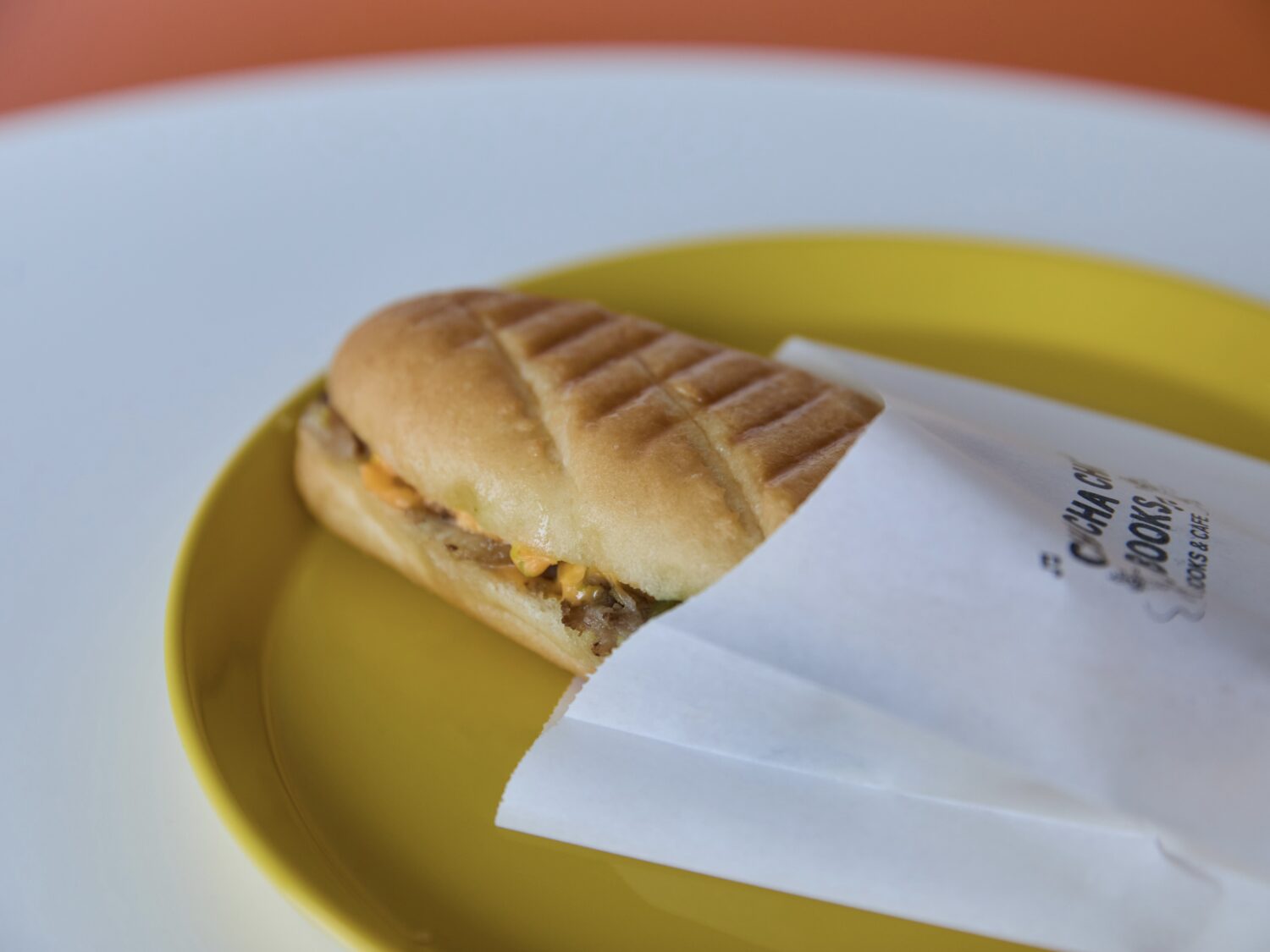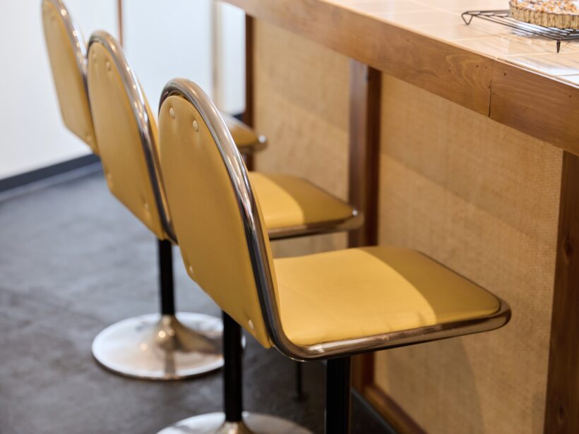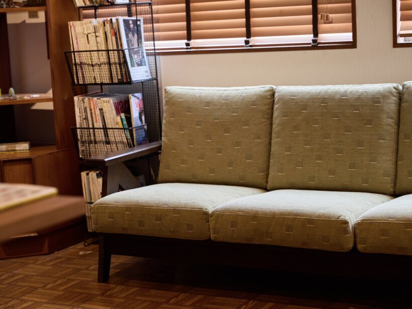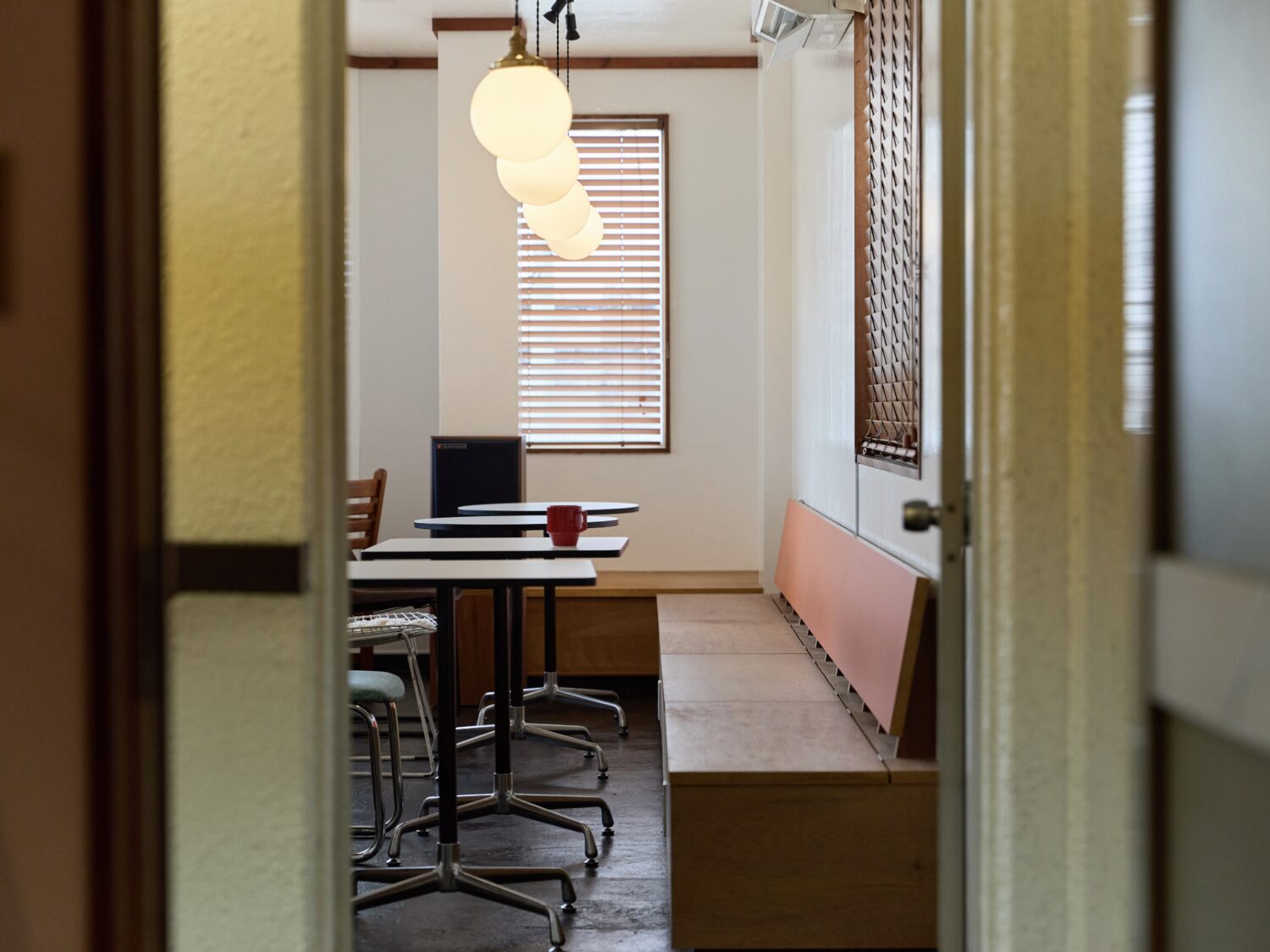 「Cha Cha Cha Books」は、本と音楽、そしてカフェバーがゆるやかに交差するブックカフェ。階段を上ると、右手には本とレコード、左手にはカフェバーのスペースが広がります。「サンプリングして店をつくり、DJのように本を並べる」というコンセプトのもと、中央テーブルの新刊本と壁面の古本棚が重なり、空間の背景として心地よい情報量が整えられています。視線が自然に流れる棚のリズムと、カフェバーのやわらかな空気が空間に奥行きを生み、本を手に取ったりグラスを傾けたりする何気ない動きが、そのまま絵になるロケーションです。
