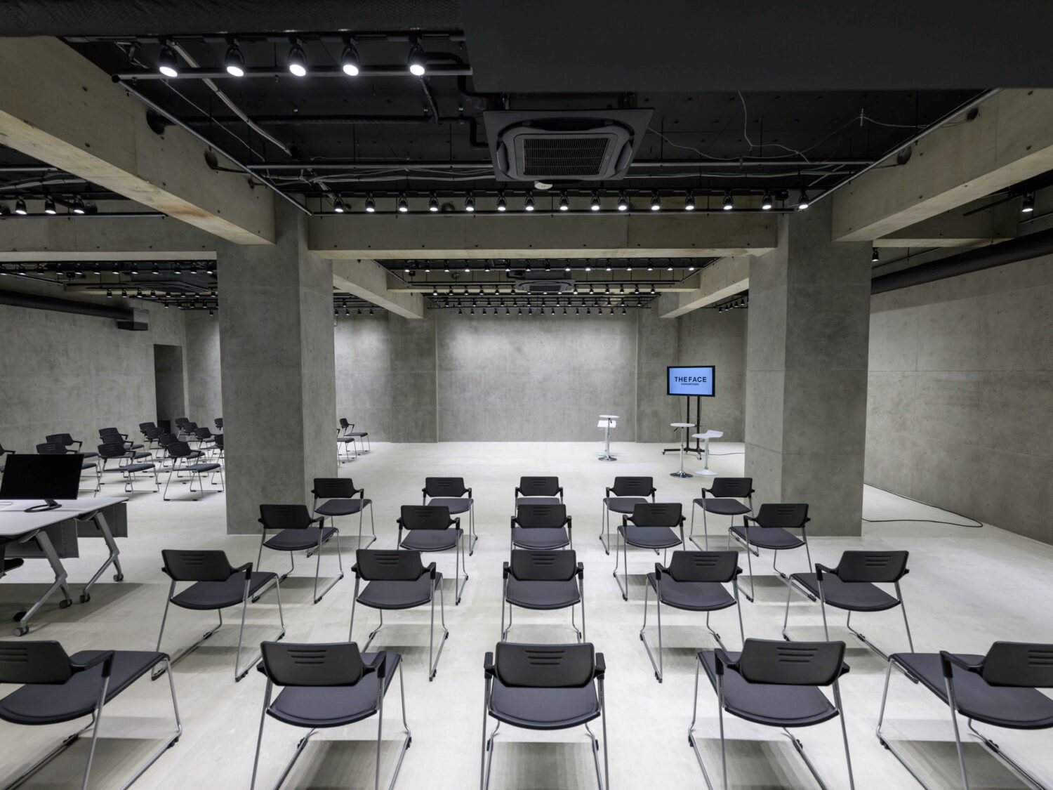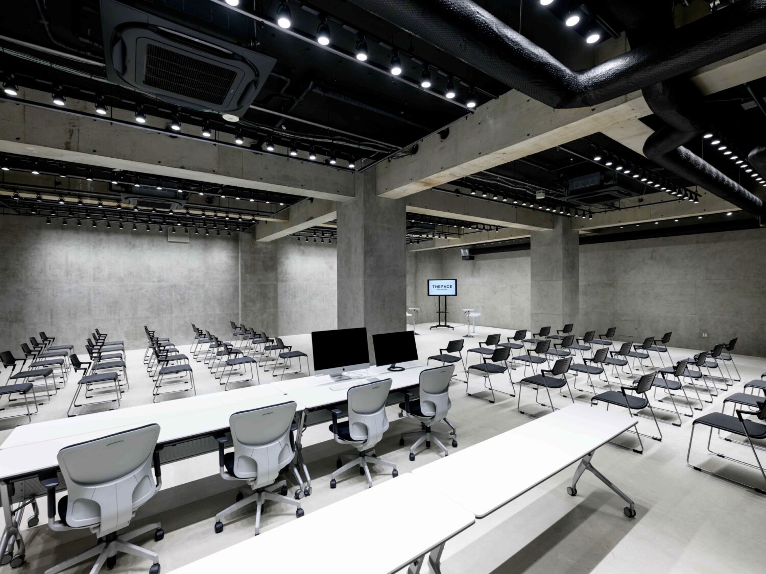 代官山駅から徒歩3分の好立地にある大型クリエイティブスペース。総床面積349㎡(約105坪)、スタジオ部分200㎡(約60坪)と広々とした空間は、展示会や撮影スタジオをはじめ、イベント、セミナー、商品発表会など多様な用途に対応可能です。バックヤードスペースはもちろん、シャンプー台などの設備も完備されており、美容系コンテンツにも活用できるのは嬉しいポイント。さらに無機質な空間は、ファッショショーなどの演出にも最適。創造性を最大限に引き出してくれる「THE FACE DAIKANYAMA」は、さまざまなプロジェクトにフィットする、まさにハイブリッドなスペースです。