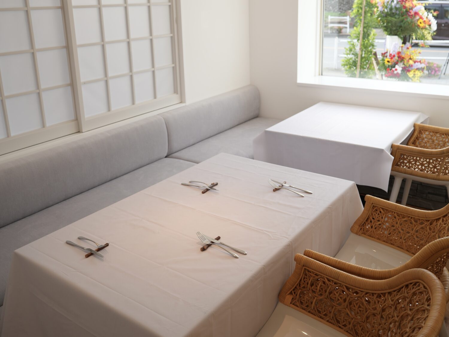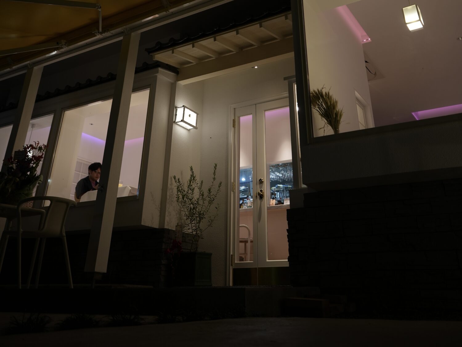 あきる野の静かな住宅地に佇む、一軒家イタリアレストラン。郊外ならではの落ち着いた環境と、柔らかな灯りに包まれた外観が、都市部では得がたい“余白のある画”を生み出します。昼は自然光がやわらかく回り込み、料理や人物の色味を素直に再現。夜はサインと店内照明が立体的な陰影を描き、ドラマ性のあるカットが成立します。店内は、障子調の建具やラタンチェア、白を基調とした壁面構成により、クリーンで温度感のあるトーンを形成。テーブルレイアウトは対談、商品撮影にも対応しやすく、俯瞰、寄り、引きと幅広い画づくりが可能です。料理のプレーティングも背景とのコントラストが美しく、フード撮影にも高い再現性を発揮します。