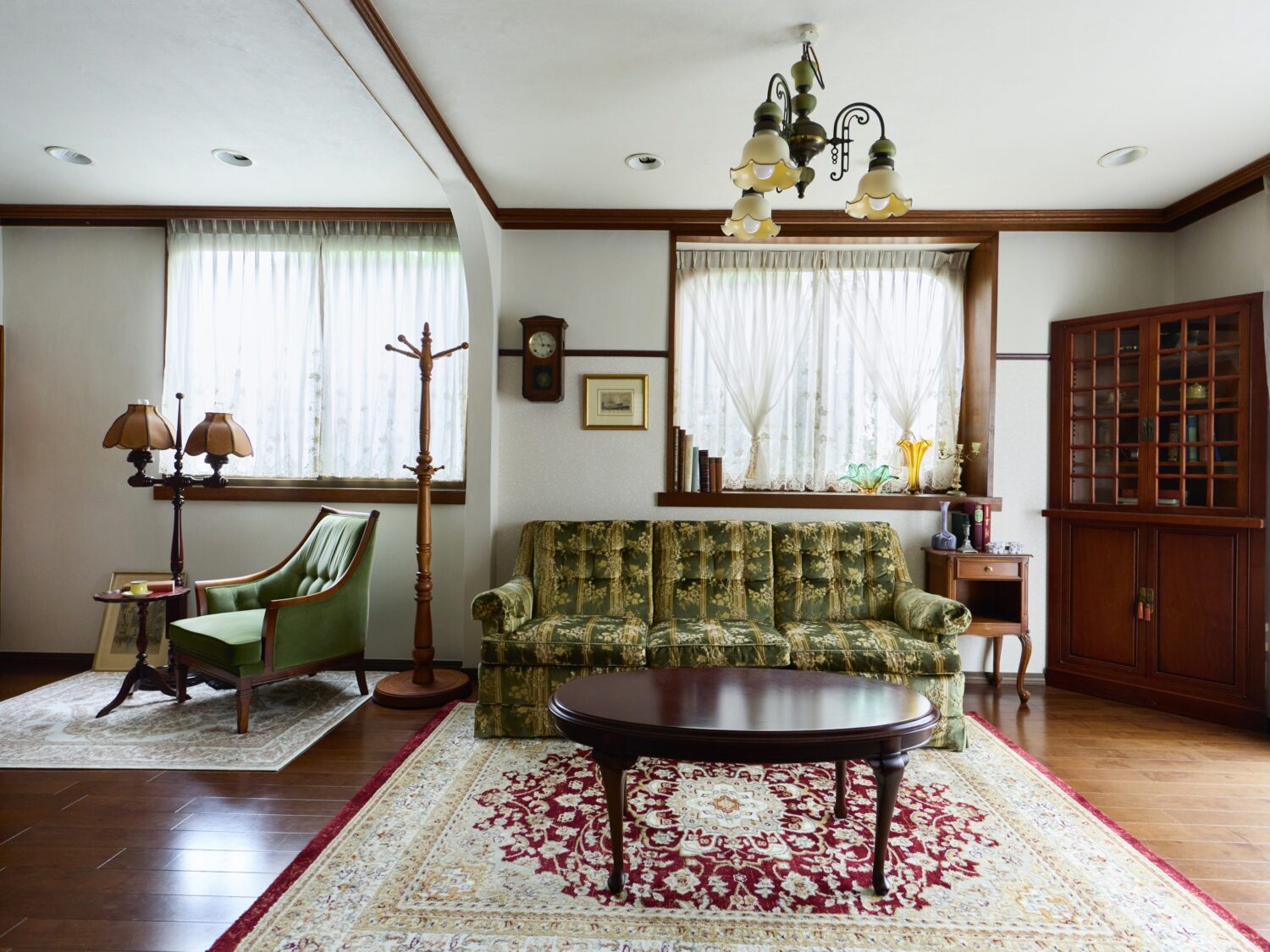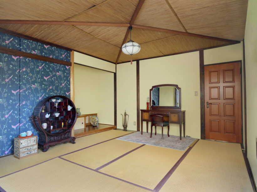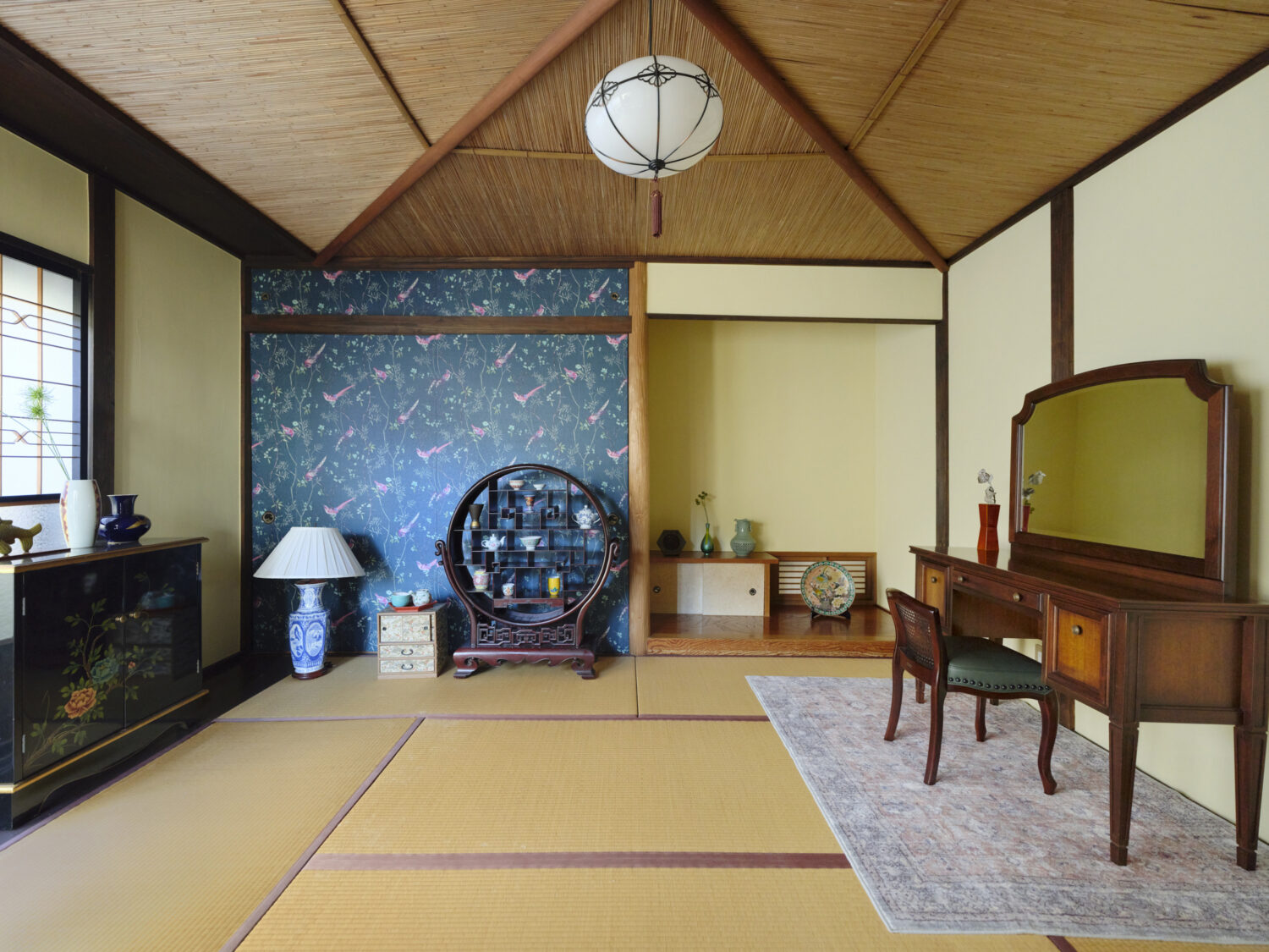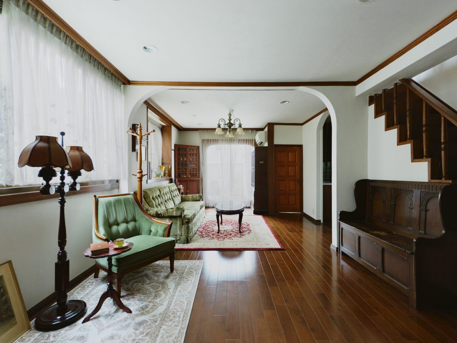 どこか懐かしい昭和の空気と、異国情緒が溶け合う一軒家のハウススタジオ。アンティーク家具が並ぶリビングや、深い緑のタイルが印象的なアメリカンなキッチン、シノワズリの趣を感じる和室など、1階は時代を感じさせる情緒豊かな空間が広がります。2階には白壁とアーチ窓から自然光が差し込み、ヴィンテージとリゾートの要素が融合した、旅先のような開放感を演出。自然光の入る小部屋や緑のカーペットが敷かれたモダンな空間、そして豊富なプロップを活かして、ノスタルジックからモダンまで多彩な撮影シーンに対応可能です。