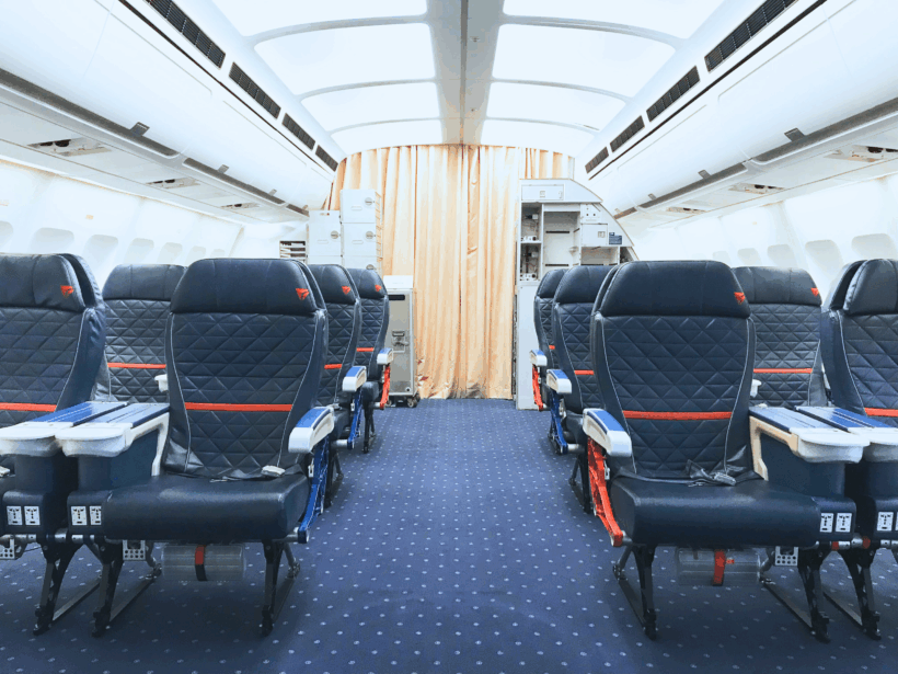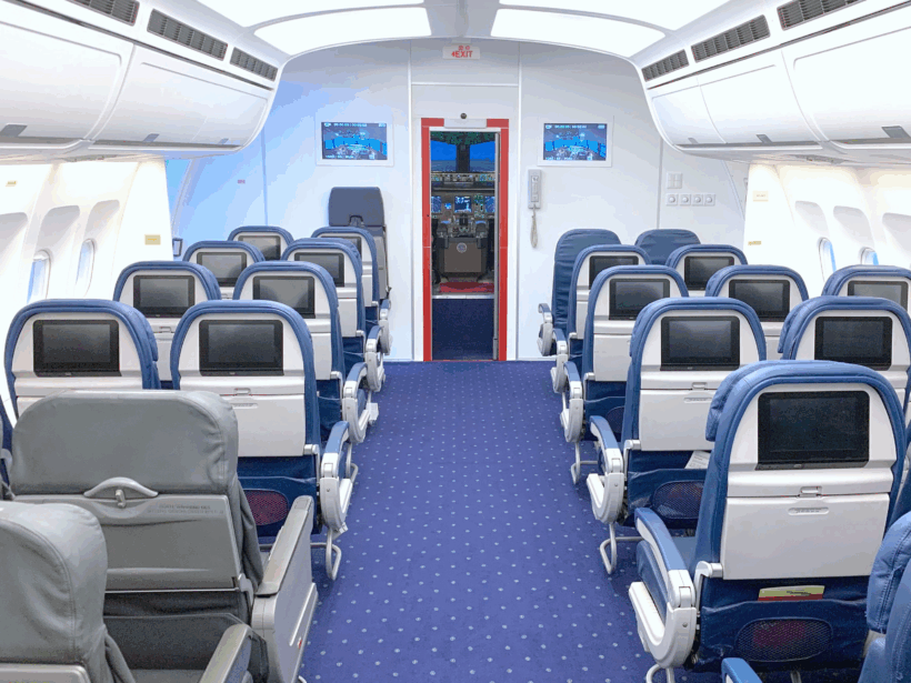 客室はもちろん、コクピットで撮影をしたいと思ったら迷わずこちら。全国でも珍しい、操縦席と客室が一体となった航空機再現施設です。客室内の備品はすべて実際の航空機で使用されていた本物を採用し、ファーストクラスとエコノミークラスの座席をご用意。レイアウトも用途に応じて自由にカスタマイズ可能とのこと。操縦席には、長距離国際線で使用されているボーイング777の本格シミュレーターを設置。計器やスイッチ類は実機同等サイズで、客室窓の映像とも同期し、リアリティある航空シーンの撮影を可能にしてくれます。再現ドラマやSNSコンテンツなど多数の実績を持つ、体験まで演出できる唯一無二のロケーションです。