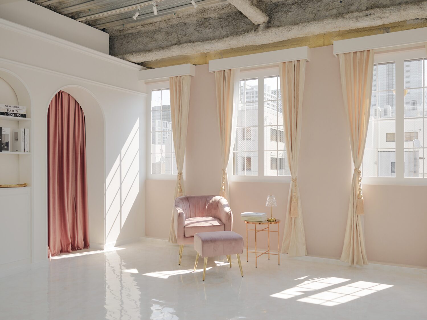 まるでフランス映画のワンシーンに迷い込んだような、ヨーロピアンテイストのラグジュアリーな撮影スタジオ。ホテルライクな空間に、ホワイトゴールドを基調とした壁やアンティーク調のインテリアが重なり、都内ではなかなか見かけない上品なムードが漂います。ファッション撮影やポートレート、ビューティー撮影はもちろん、アクセサリーやコスメなどの商品撮影にもぴったり。バック紙や機材、プロップも豊富に揃っているので、イメージに合わせた世界観づくりがしやすいのも嬉しいポイント。日常から少し離れた、特別な空気感を求めるから方にオススメのスタジオです。