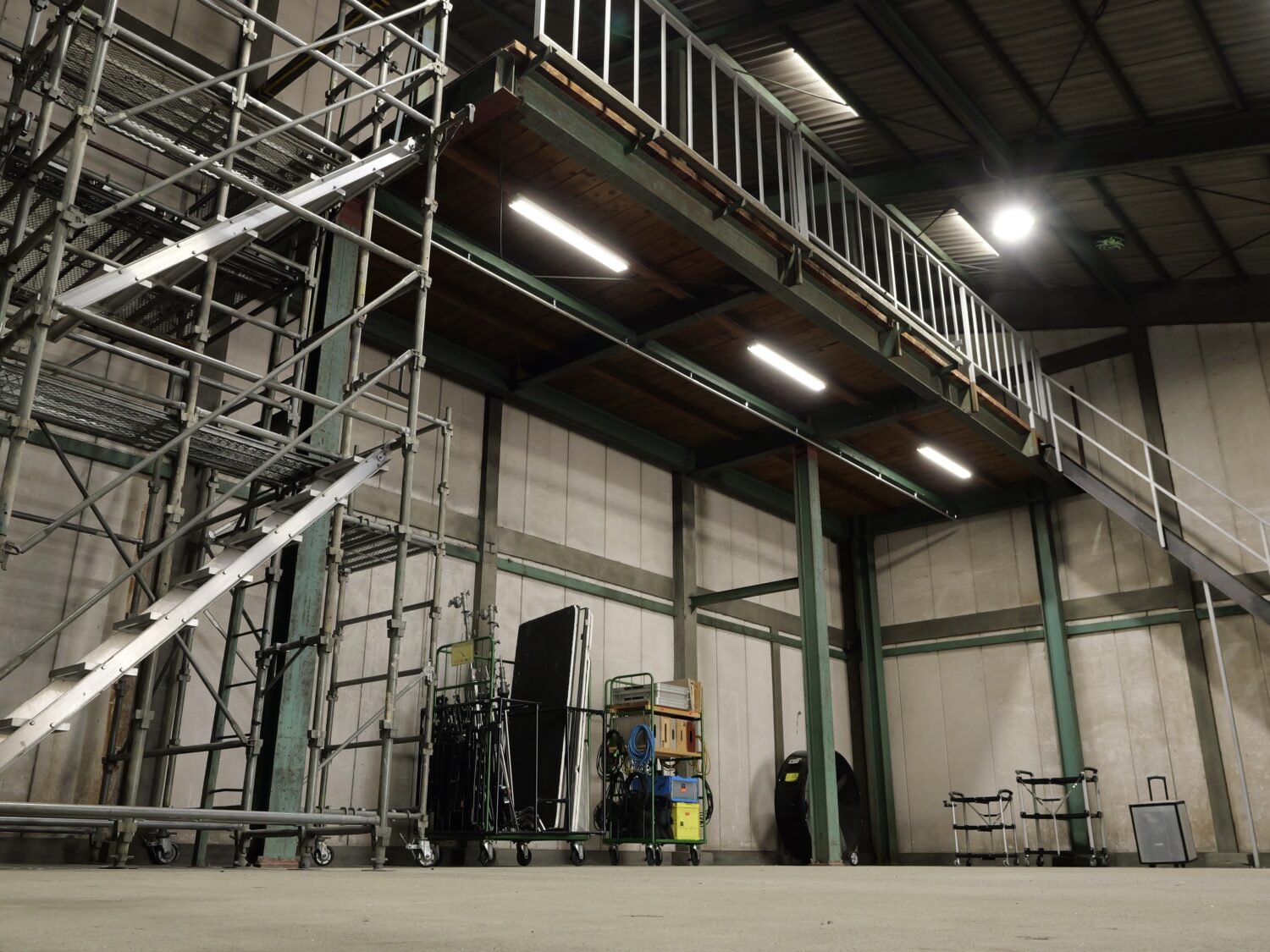 倉庫と言えば、やっぱりアジトのような空気感が魅力。無骨さに加え、高い天井と柱のない空間が生み出す開放感と自由度の高さもポイントです。ガレージのようなラフに、荒々しい素材感をそのまま残したこちらのスタジオは都内でも希少な存在。音出しや火、水、スモークの使用も可能で、さまざまなクリエイティブに対応できるのも◎。空間の広がりを活かし、展示会やファッションショー、音楽イベントなどにもおすすめです。どこか秘密基地のようなこの場所は、制作者のアイデア次第で多彩なシーンを作り出すことができること間違いなしです。ちなみに楽器レンタルや照明機材などもレンタル可能です。