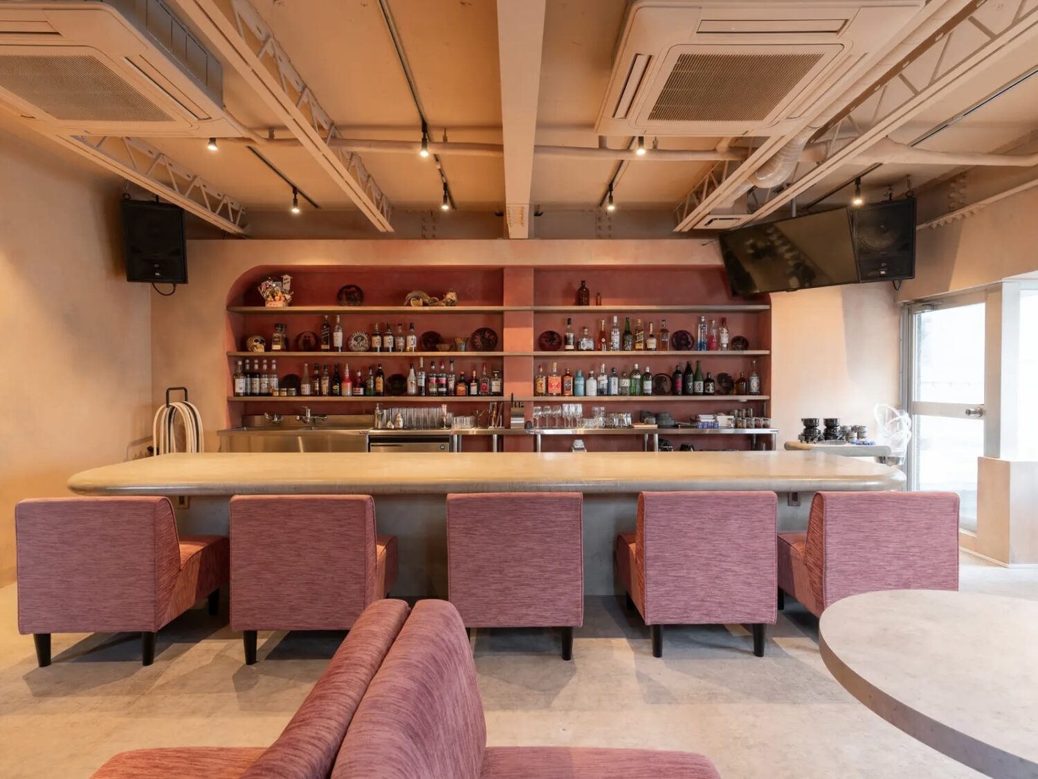 シックでモダンな空間に、カウンターとソファ席がバランスよく配置された洗練されたバー空間。神泉駅から徒歩3分、普段はシーシャバーとして営業しているロケーションで、やわらかなピンクグレーを基調に、落ち着きとラグジュアリーが調和するトーンでまとめられています。過度な装飾を抑えたレイアウトは、被写体やプロダクトの魅力を引き立て、ムードのあるシーンやブランドの世界観を重視したビジュアル制作にもおすすめ。ポップアップやイベント、少人数での貸切利用にも対応可能なので、構成次第で多様な演出が可能な魅力あるスペースです。