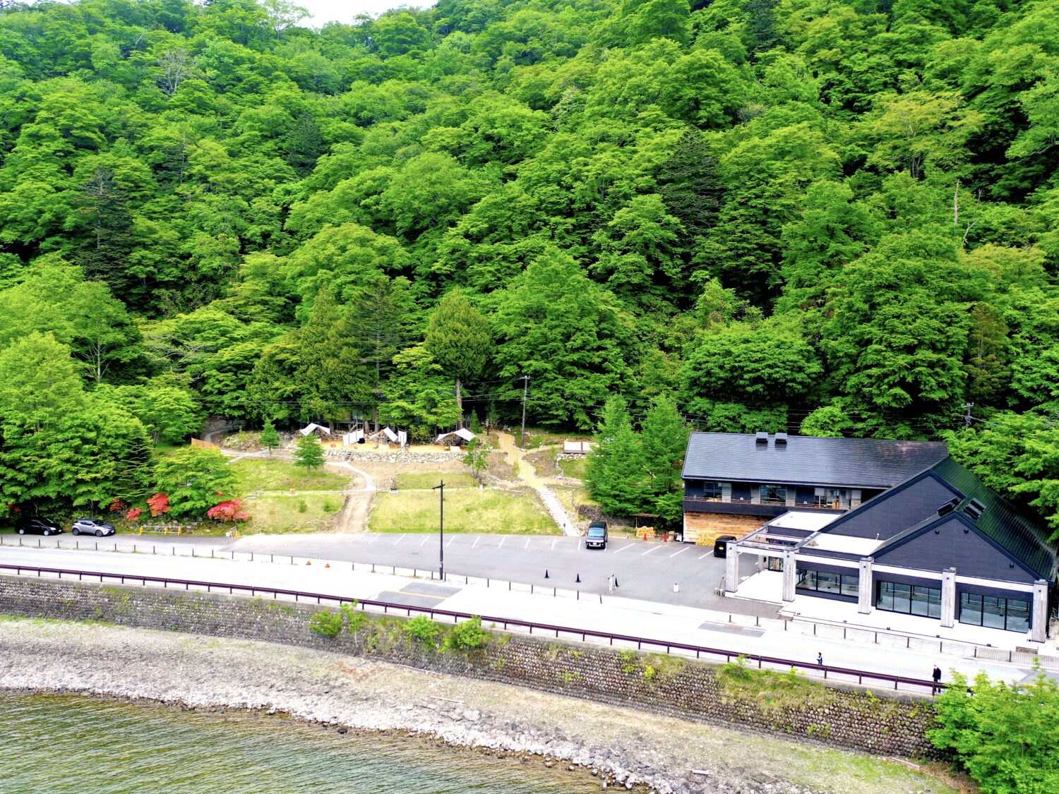 グランピング、キャンプ、レストラン、カフェ、ショップが同居するアウトドア複合施設です。森と湖に抱かれた静かな環境は“抜け”がよく、自然光の移ろいによって時間帯ごとの表情がくっきり現れます。グランピングは全3室(うち1室はペット可)。各区画に焚き火&BBQエリアを備え、室内にはシャワー、トイレを完備しております。レンタルギアが揃っており、アウトドアのシーンづくりがしやすい環境です。館内レストランはランチ〜ディナー(要予約)に対応し、食事のシーンにも対応。撮影、打ち上げ、宿泊を、この一ヶ所でまとめて行うことができる現場運用に強いロケ地となっています。全施設を利用したテレビ特番などロケ実績も多数。