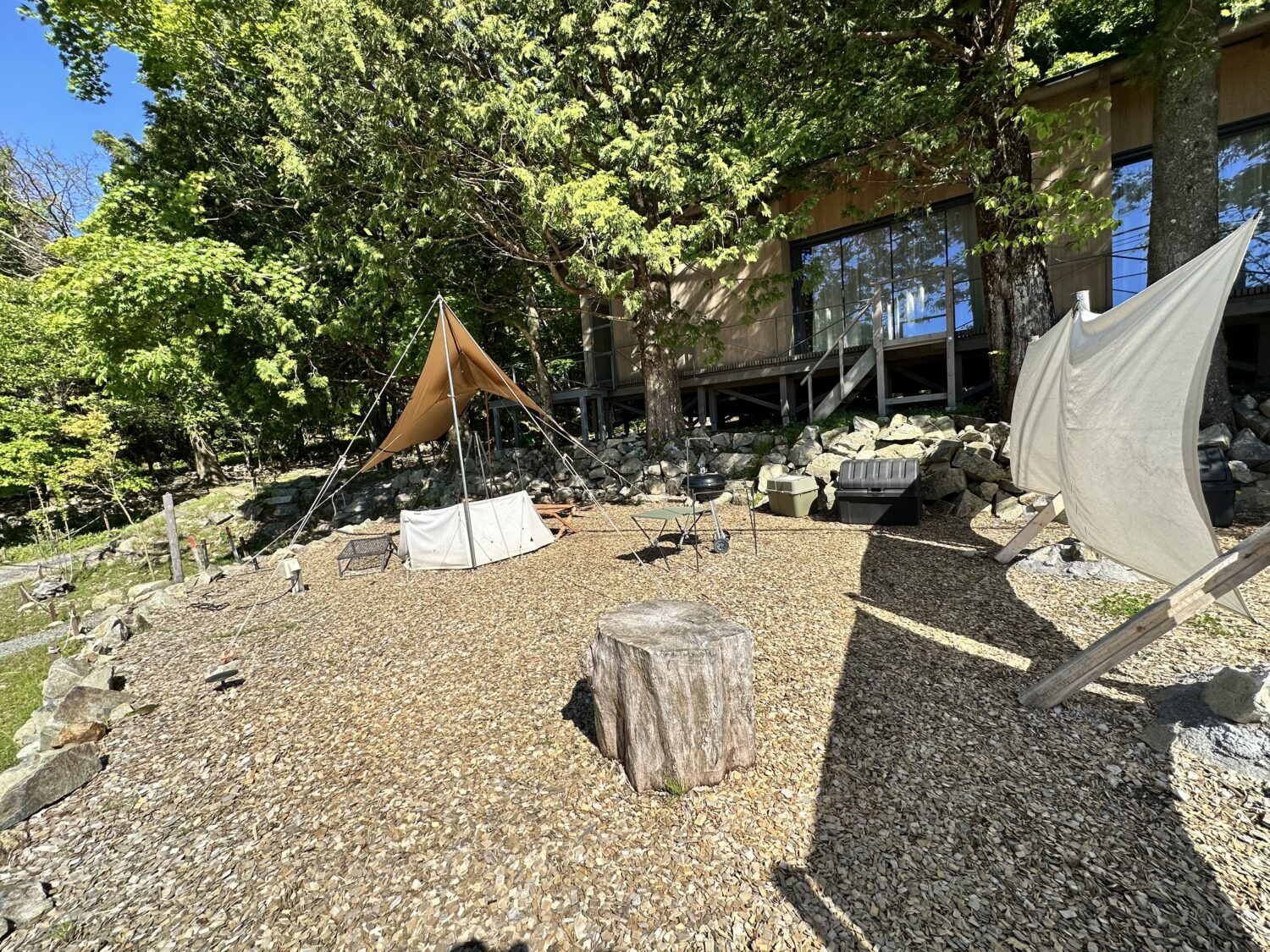 グランピング、キャンプ、レストラン、カフェ、ショップが同居するアウトドア複合施設です。森と湖に抱かれた静かな環境は“抜け”がよく、自然光の移ろいによって時間帯ごとの表情がくっきり現れます。グランピングは全3室(うち1室はペット可)。各区画に焚き火&BBQエリアを備え、室内にはシャワー、トイレを完備しております。レンタルギアが揃っており、アウトドアのシーンづくりがしやすい環境です。館内レストランはランチ〜ディナー(要予約)に対応し、食事のシーンにも対応。撮影、打ち上げ、宿泊を、この一ヶ所でまとめて行うことができる現場運用に強いロケ地となっています。全施設を利用したテレビ特番などロケ実績も多数。